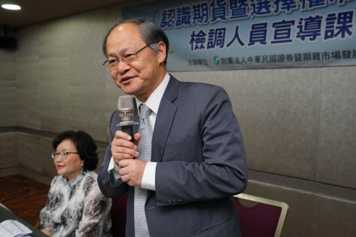 為增進各界對期貨市場的認識,「期貨產業發展基金」108 年度工作計畫之一即針對檢調人員辦理宣導課程,協助執法人員瞭解期貨選擇權市場管理規範、實務運作以及風險管理,進而維護市場交易安 全、保障交易人權益之目標,健全期貨產業發展。 本課程於108 年6 月14 日全日舉辦,包括各地檢署檢察官、檢 察事務官以及調查局官員代表等共51 位參加,開課前中華民國期貨 業商業同業公會吳桂茂秘書長及本基金會張麗真總經理並蒞會致詞 歡迎及感謝執法機構對本案之參與。 |